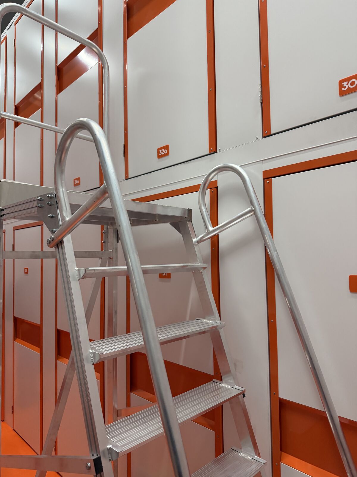 Кладовки 2-го яруса высоко: чтобы попасть в них, используйте лестницу-платформу. Такие антресольные боксы бюджетнее, но в них сложнее размещать тяжелые предметы.