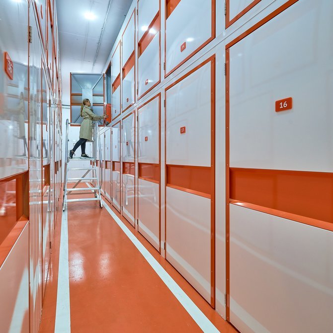 Кладовки 2-го яруса высоко: чтобы попасть в них, используйте лестницу-платформу. Такие антресольные боксы бюджетнее, но в них сложнее размещать тяжелые предметы.