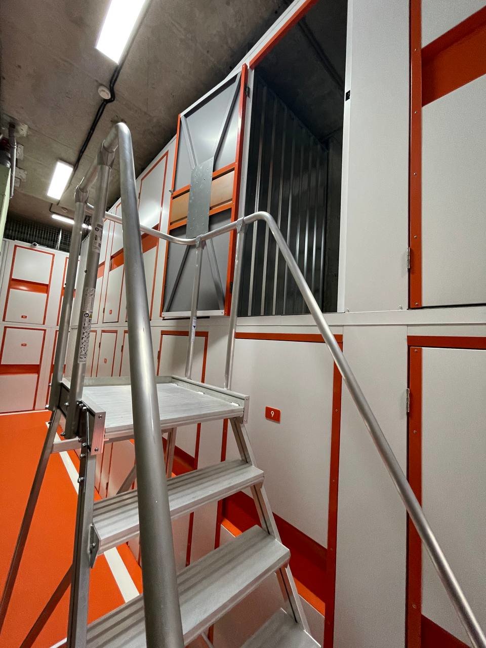 Кладовки 2-го яруса высоко: чтобы попасть в них, используйте лестницу-платформу. Такие антресольные боксы бюджетнее, но в них сложнее размещать тяжелые предметы.
