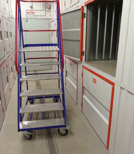 Кладовки 2-го яруса высоко: чтобы попасть в них, используйте лестницу-платформу. Такие антресольные боксы бюджетнее, но в них сложнее размещать тяжелые предметы.