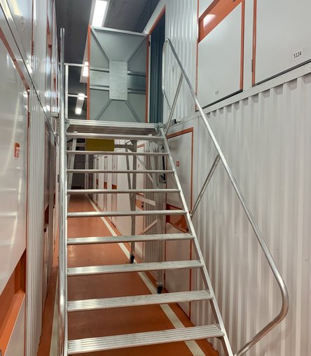 Кладовки 2-го яруса высоко: чтобы попасть в них, используйте лестницу-платформу. Такие антресольные боксы бюджетнее, но в них сложнее размещать тяжелые предметы.