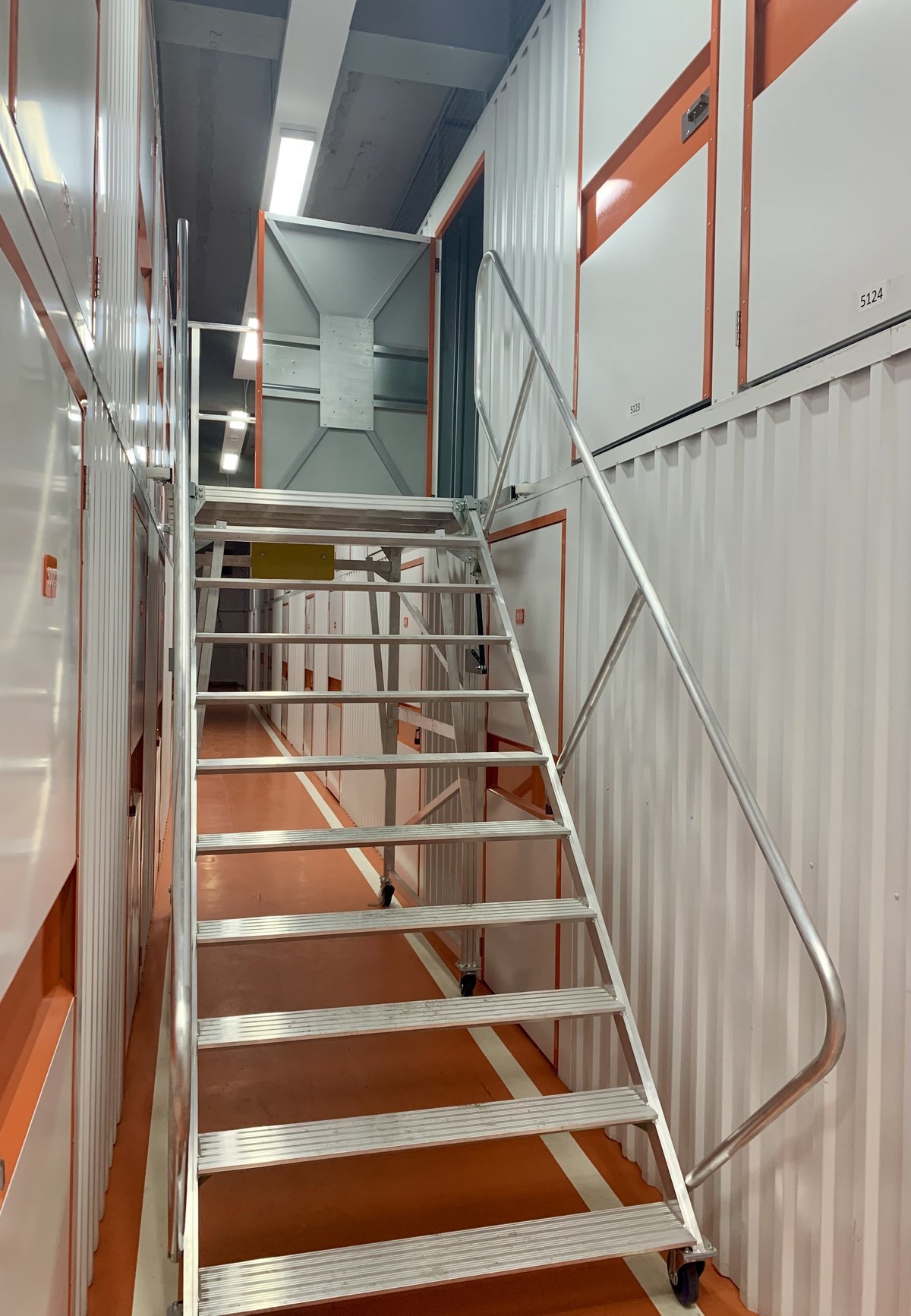 Кладовки 2-го яруса высоко: чтобы попасть в них, используйте лестницу-платформу. Такие антресольные боксы бюджетнее, но в них сложнее размещать тяжелые предметы.