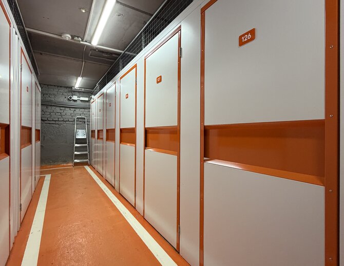 Кладовки используют для хранения личных вещей, спортивного инвентаря, велосипедов и лыж, а также для переезда или ремонта. Высота потолков до 2 метров, что удобно при размещении стеллажей и крупногабаритных предметов. В помещении есть тележки для перевозки вещей, стремянки и Wi-Fi. Лифта в здании нет, этот момент стоит учитывать при загрузке.